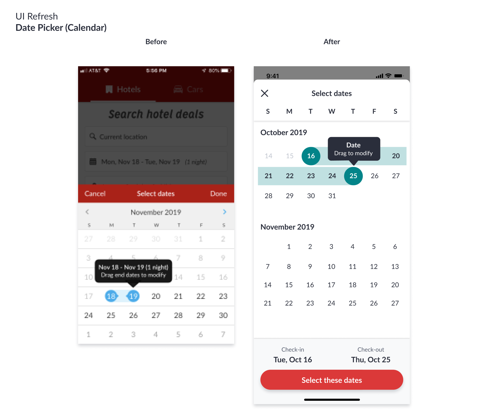 Implementing the Hotwire Design system across the app. If we share this design system across all platforms, we will ensure that our customers have a consistent experience no matter where they choose to search or book. As part of the design system effort, it also gives us an opportunity to modernize our UI elements, in effect updating the look and feel of the apps at the same time.